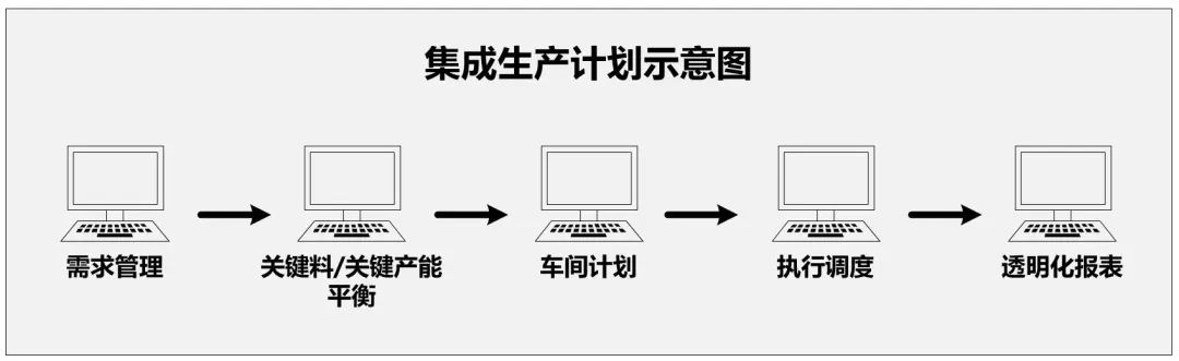 第三,是模型集成。统一设计的一个生产计划模型,并利用同一数据源的数据。