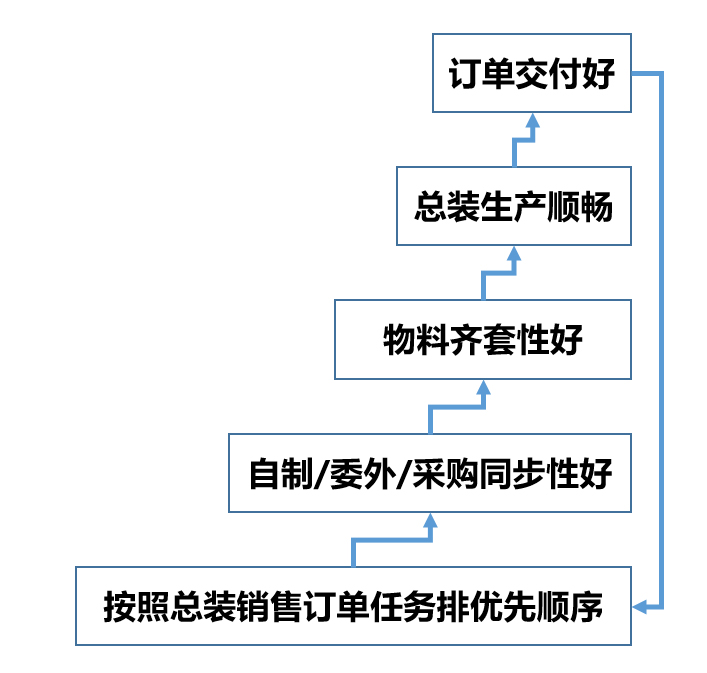 物料控制是组装类企业(物料驱动型企业)的控制关键,物料控制的关键是总装前的齐套性,而齐套性的控制关键是自制、委外和采购件的同步性,而控制齐套性的关键是自制工厂、委外供应商、采购供应商的优先顺序,形成了一个完整的逻辑链条。