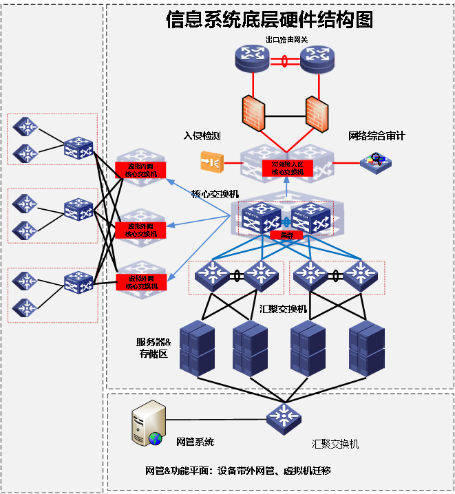信息系统承载解决方案,为客户提供全方位的系统集成设计。信息系统承载解决方案涵盖信息系统相关网络、服务器、存储、安全、管理、基础环境等各个方面,根据客户需求进行灵活的选择,并在这些层面上进行了备份设计。其中网络设计使用成熟的分层结构,同时使用虚拟化设计,降低网络的逻辑复杂度,且提高其稳定性。针对服务器及存储资源,使用虚拟化部署,充分利用设备性能的同时,也能够灵活分配系统资源,满足业务对性能的弹性需求和稳定运行。可选的网管系统,可辅助客户实时了解信息系统状态,高效发现和处置发送的问题,提高信息系统工作效率。结合业务特性,为客户推荐配套的安全、设计设计,配置入侵检测,漏洞扫描、网络综合审计等安全产品,实施防范、发现、规避可能存在或发生的信息安全风险,保障风险操作可审计,可追溯。对于基础环境架构,智能化建筑相关,例如信息系统综合布线、动环系统等,我司均具有丰富的项目经验。